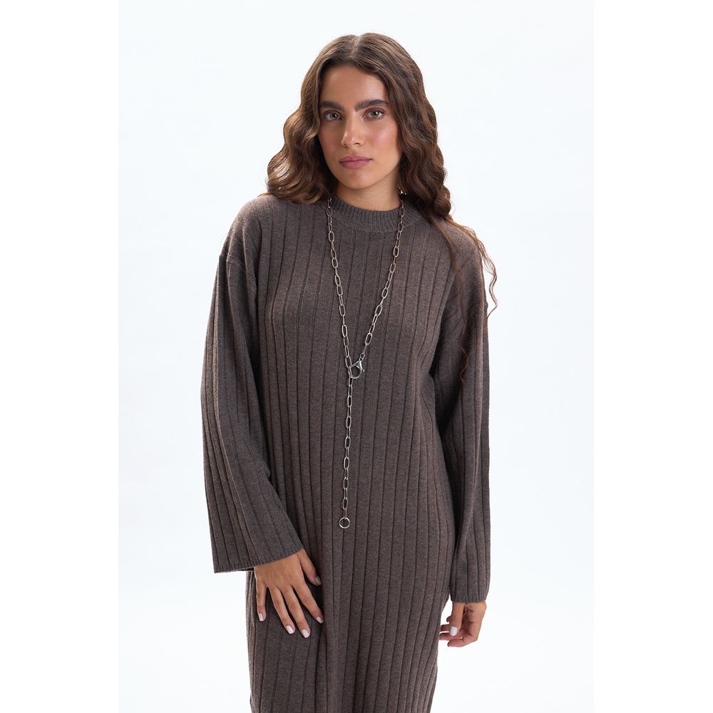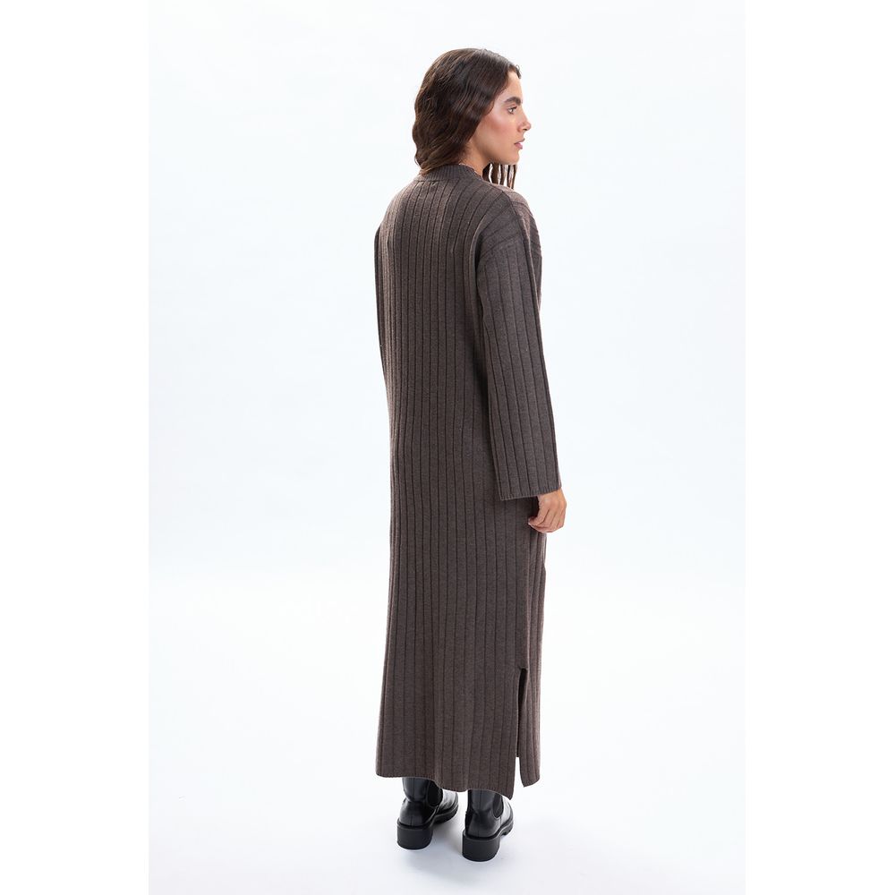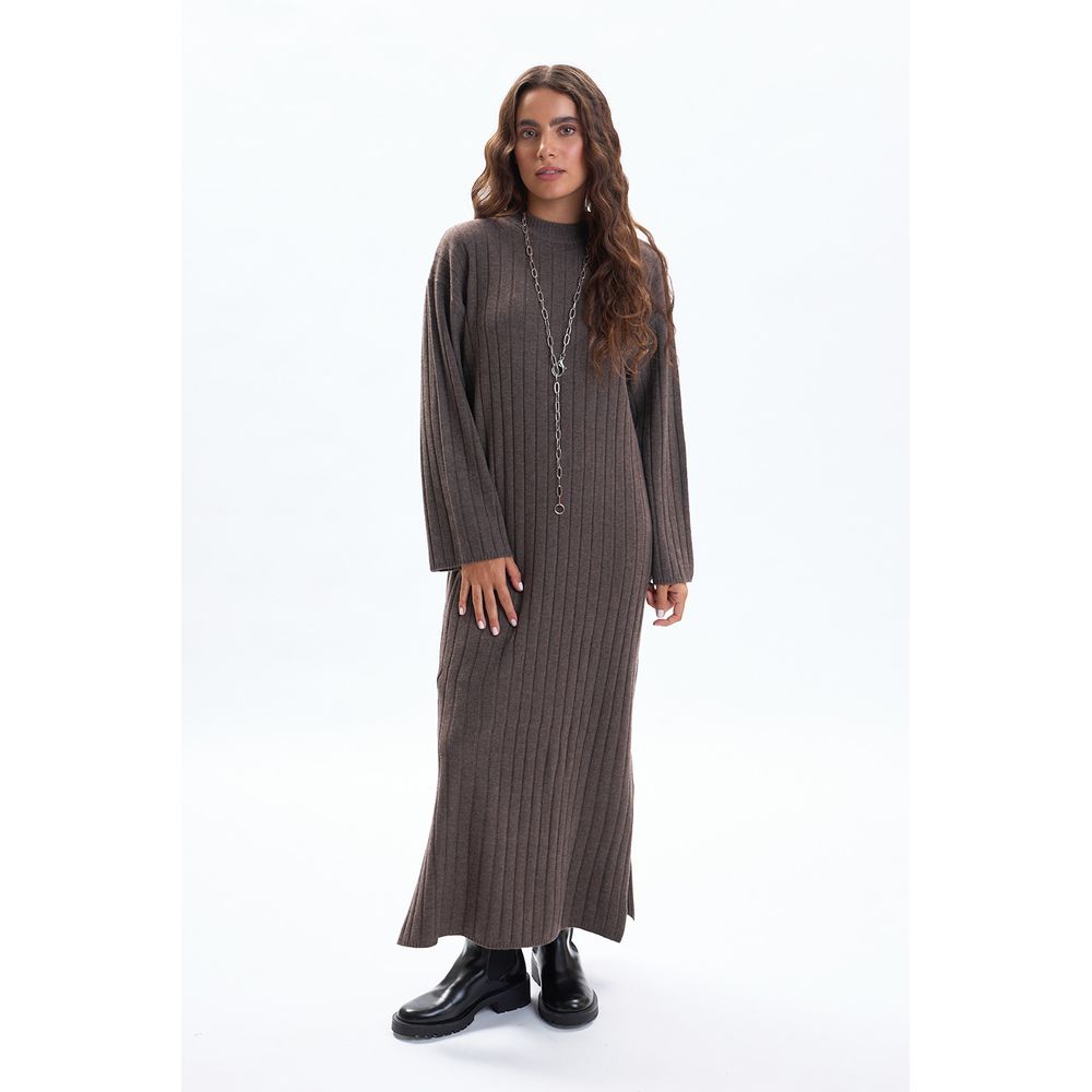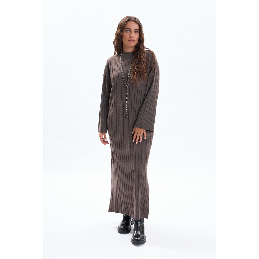 VESTIDO DE PUNTO ACANALADO MARRÓN
