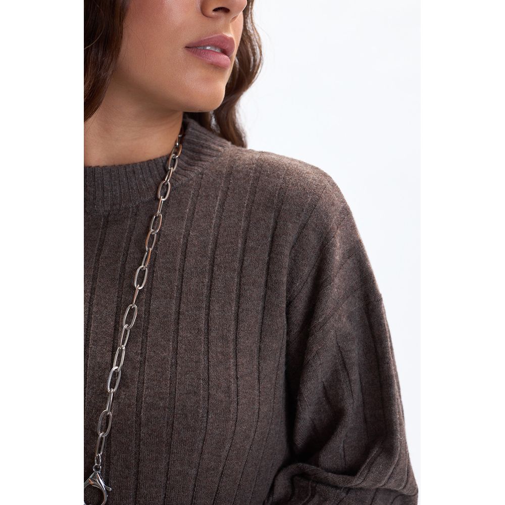 VESTIDO DE PUNTO CUELLO ALTO MARRÓN