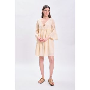 VESTIDO CORTO SIN MANGAS LINO VOLADOS AMARILLO