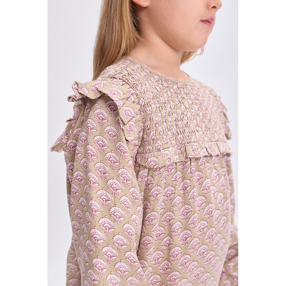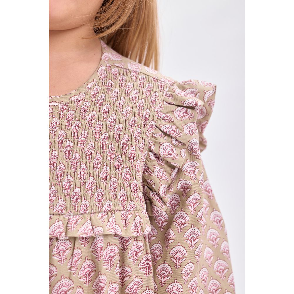 POLLERA CORTA VOLADOS ESTAMPA BOHO ROSA