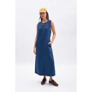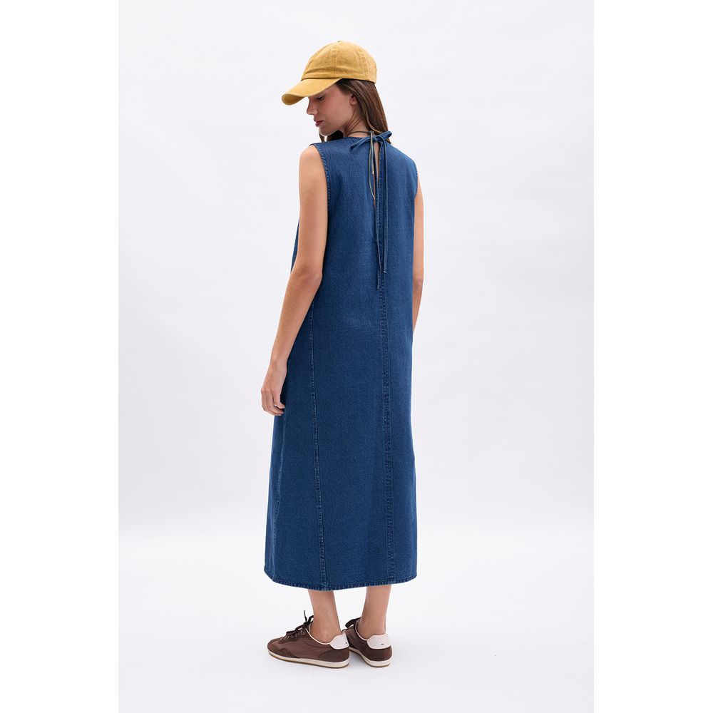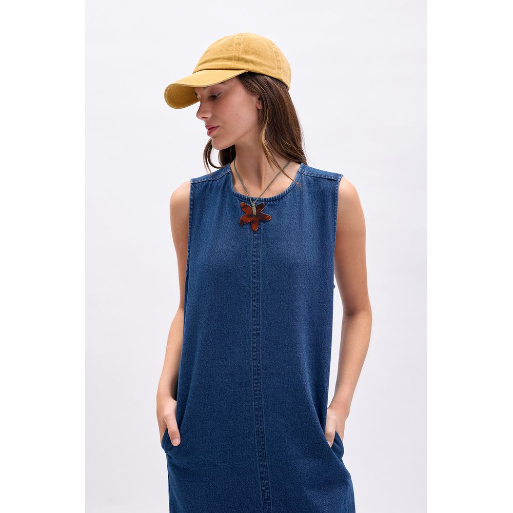 VESTIDO MANGA CORTA CUELLO V BOTONES ESTAMPA TRIBAL AZUL