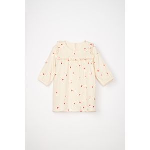 VESTIDO MANGA LARGA CON ALFORZAS Y CINTA EN PECHO CRUDO