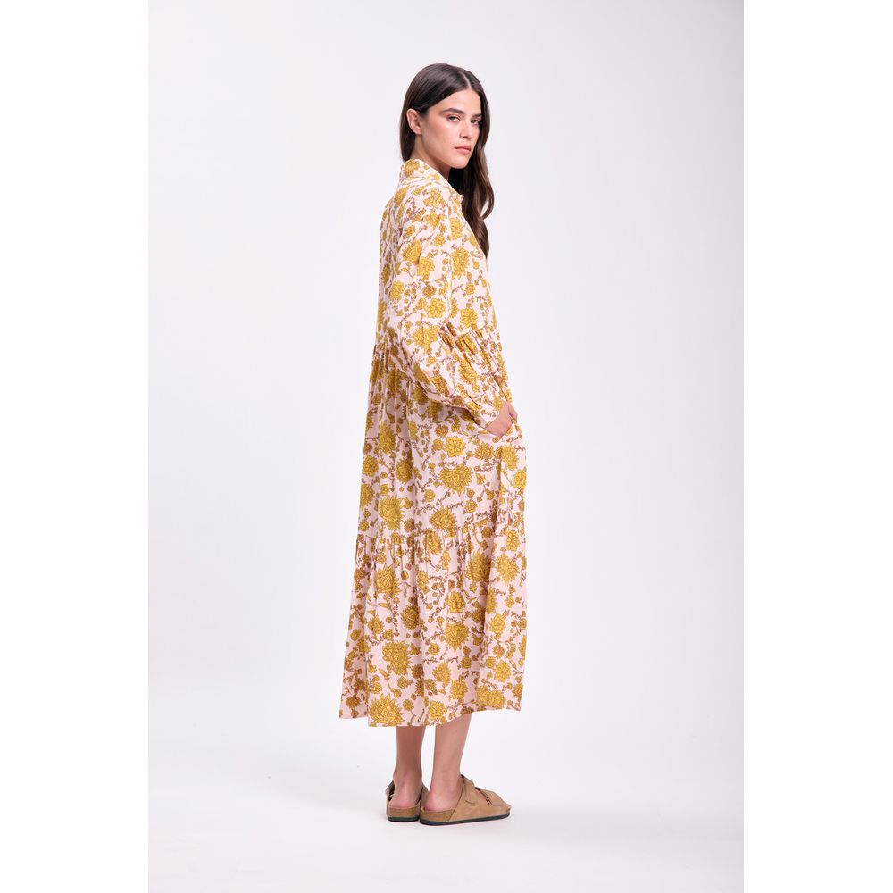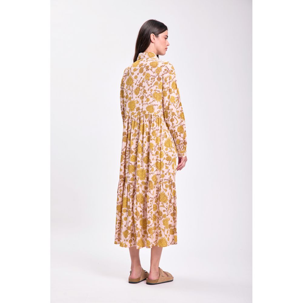 VESTIDO LARGO PANELES ESTAMPA BOHO TOSTADO