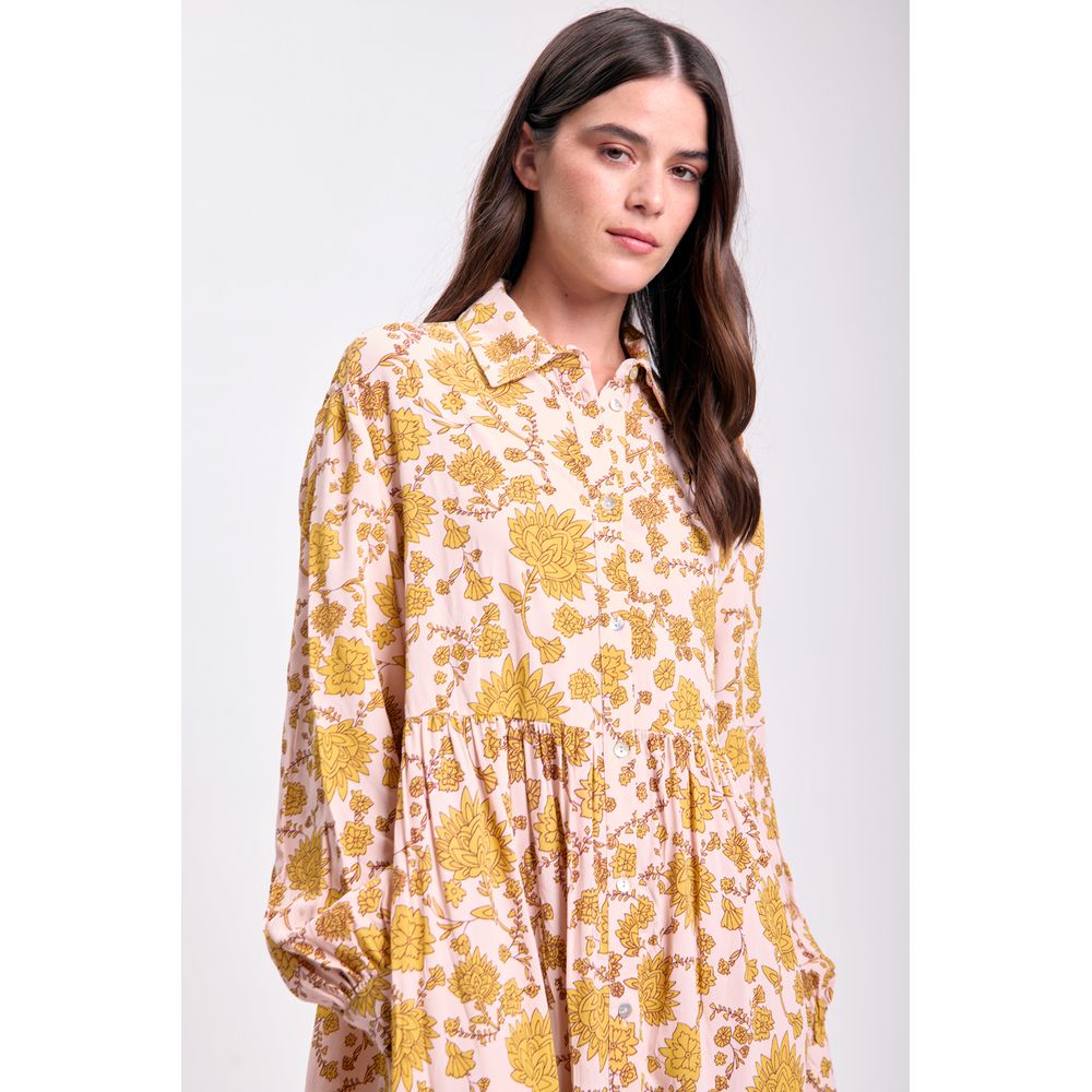 VESTIDO MANGA LARGA ESTAMPADO BEIGE CON CRUDO