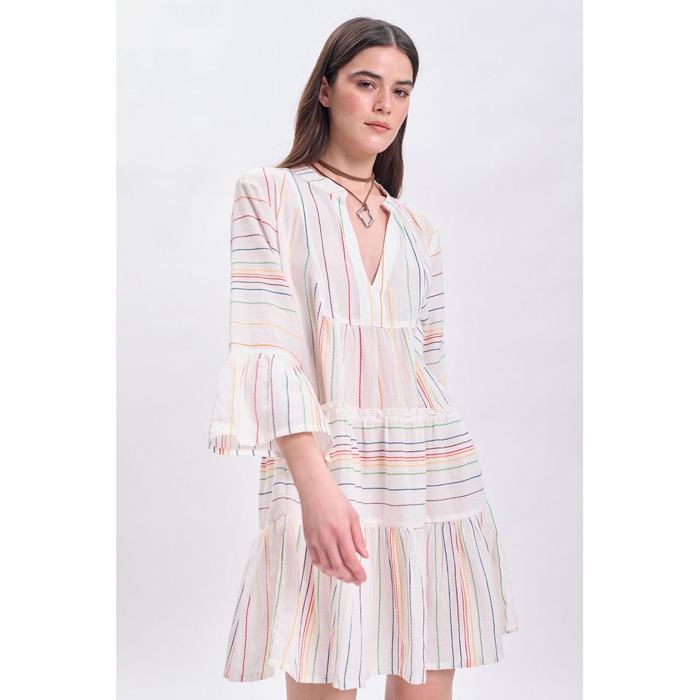 VESTIDO CORTO VISCOSA ESTAMPADO BEIGE