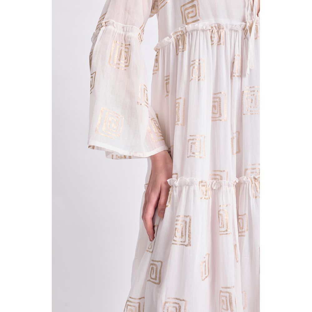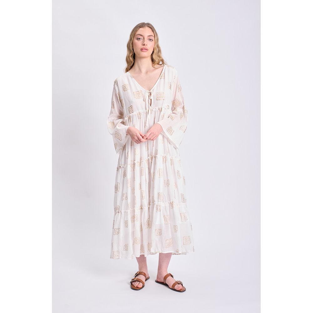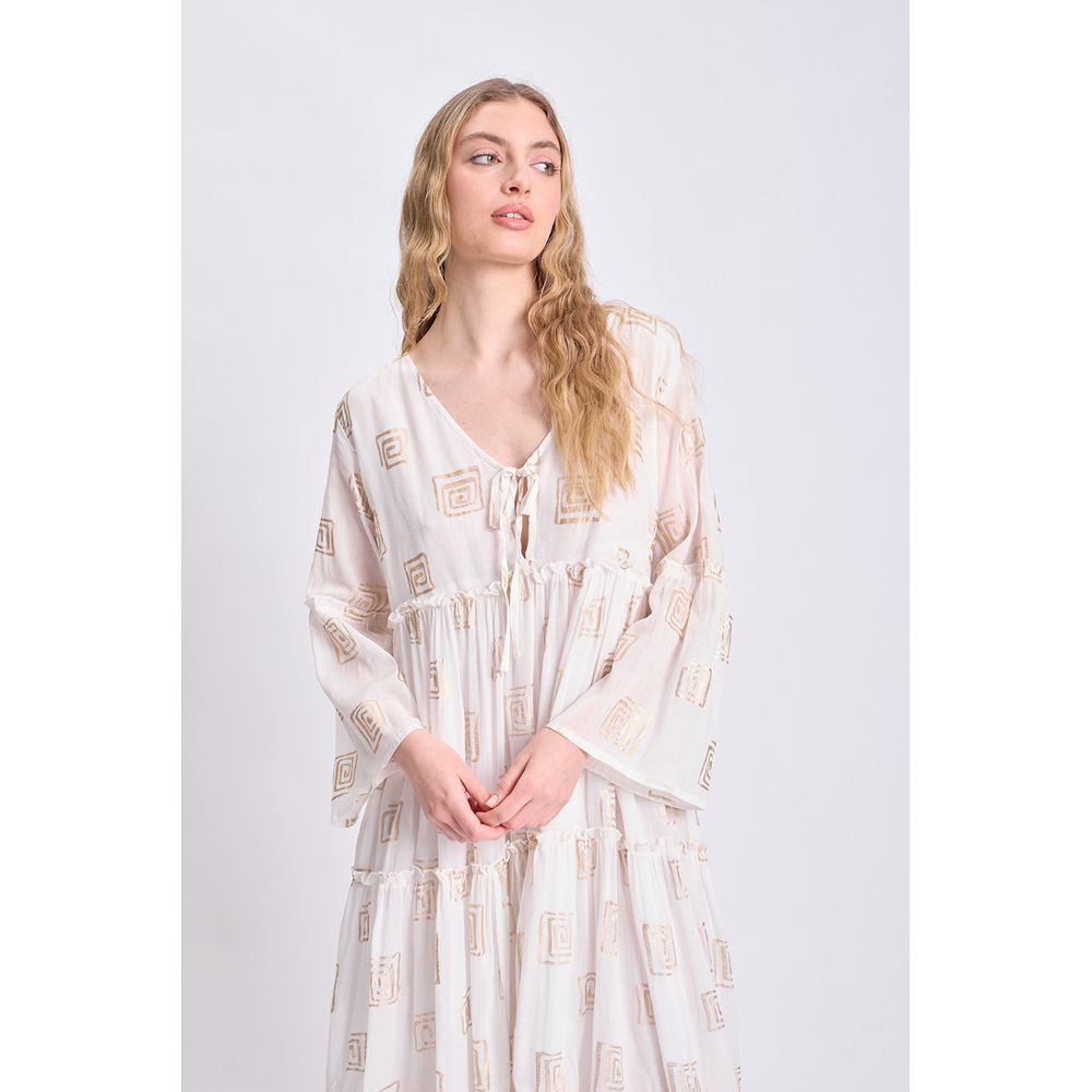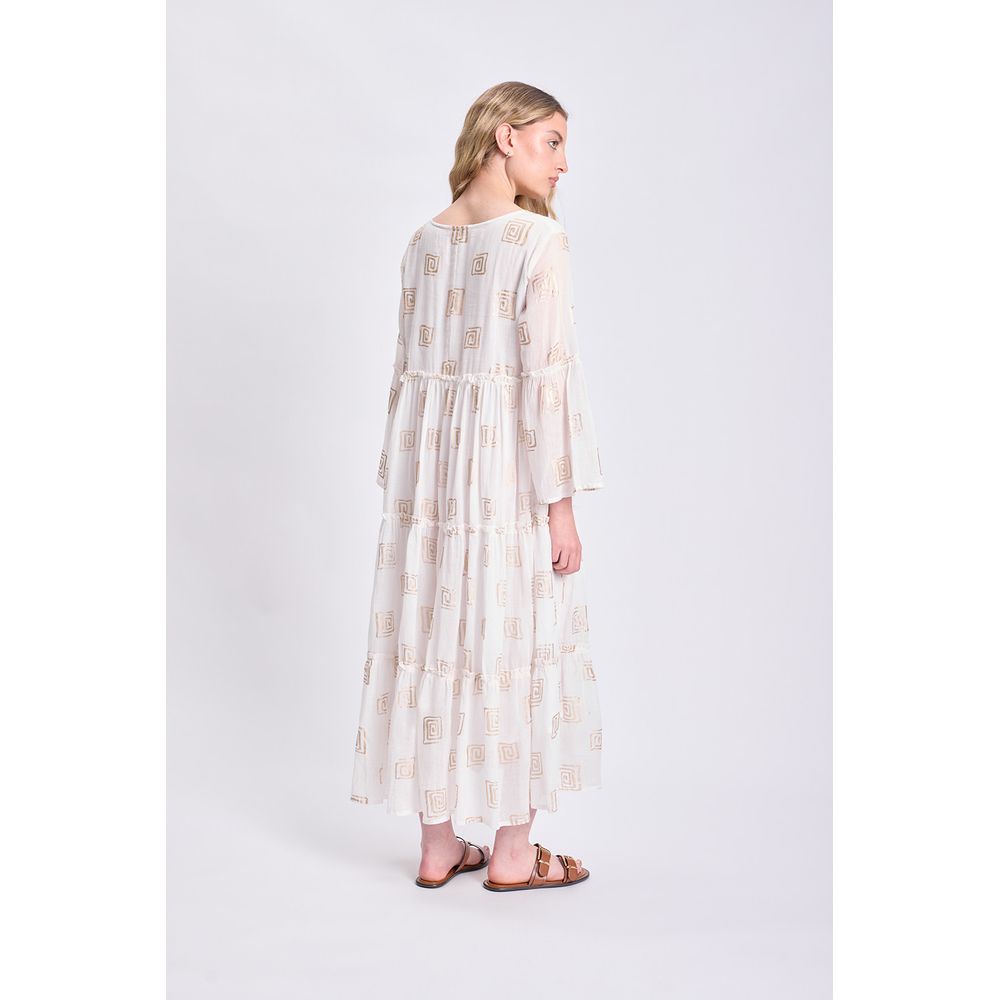 VESTIDO LARGO PANELES ESTAMPA BOHO TOSTADO