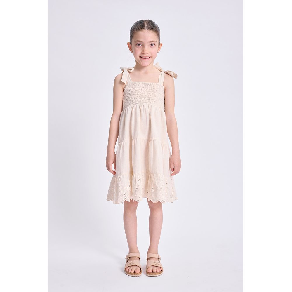 VESTIDO PUNTO SMOCK BRODERIE CRUDO