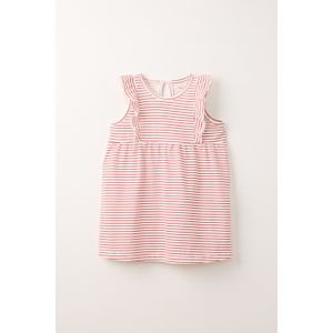 VESTIDO SIN MANGAS VOLADOS RAYADO ROJO