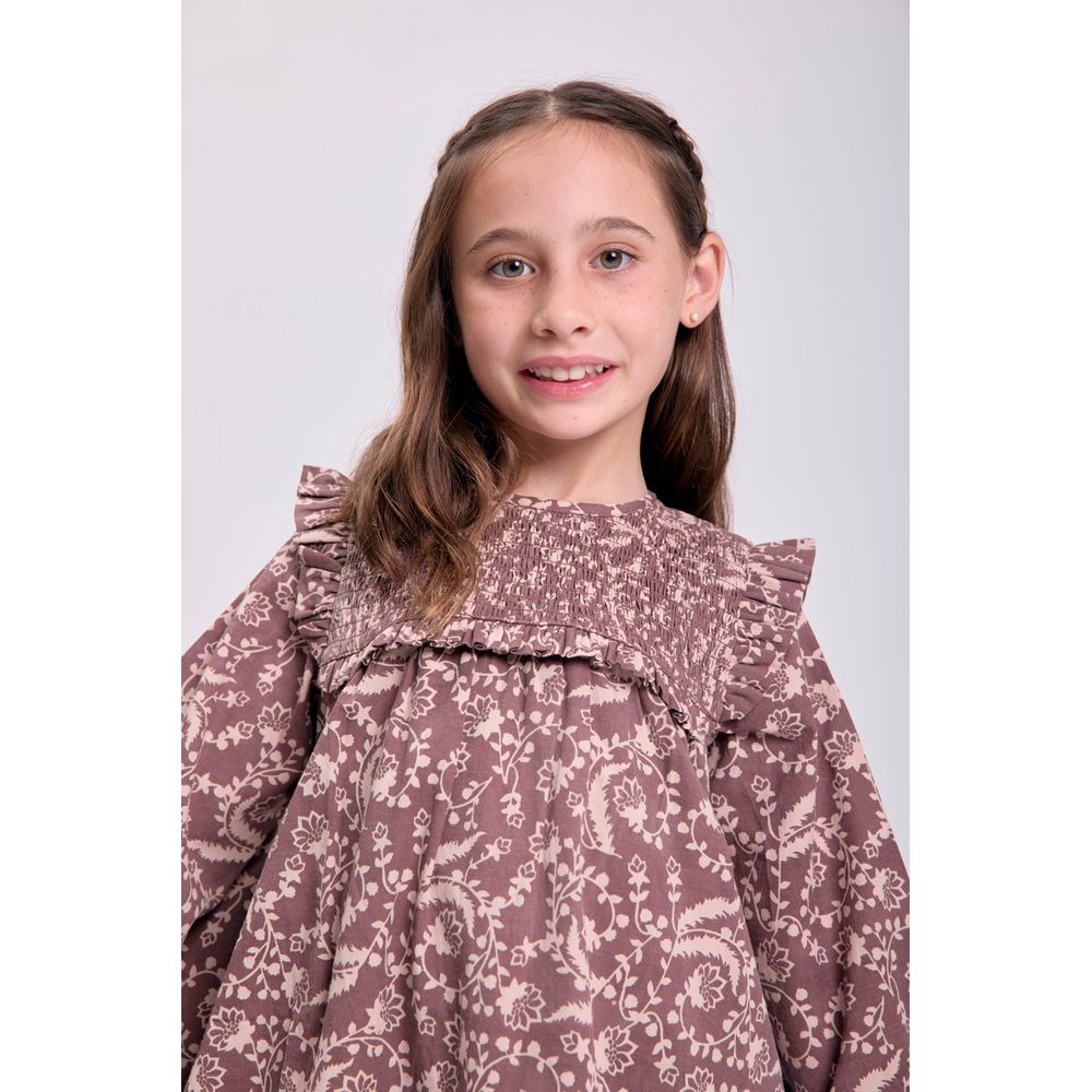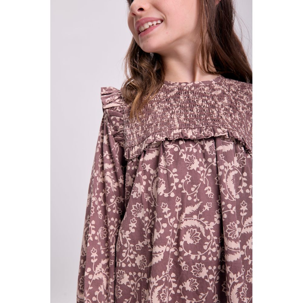 POLLERA CORTA VOLADOS ESTAMPA BOHO CRUDO